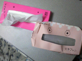 最初に宇宙怪獣ステファン。もう潰れた箱が銀魂で無残にもお妙に引き裂かれたステファンに見えたので、顔を書きました。